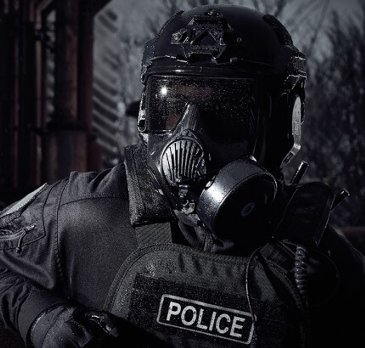 Gas masks and compatible CBRN/riot-control filters designed for law-enforcement operations. Options prioritize field of view, comfort, and communication.
